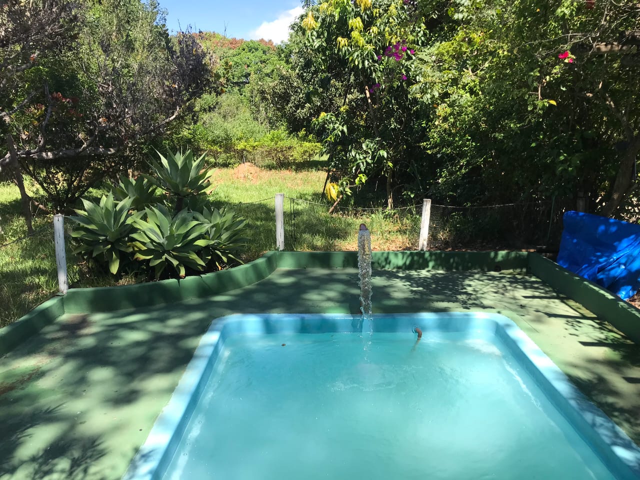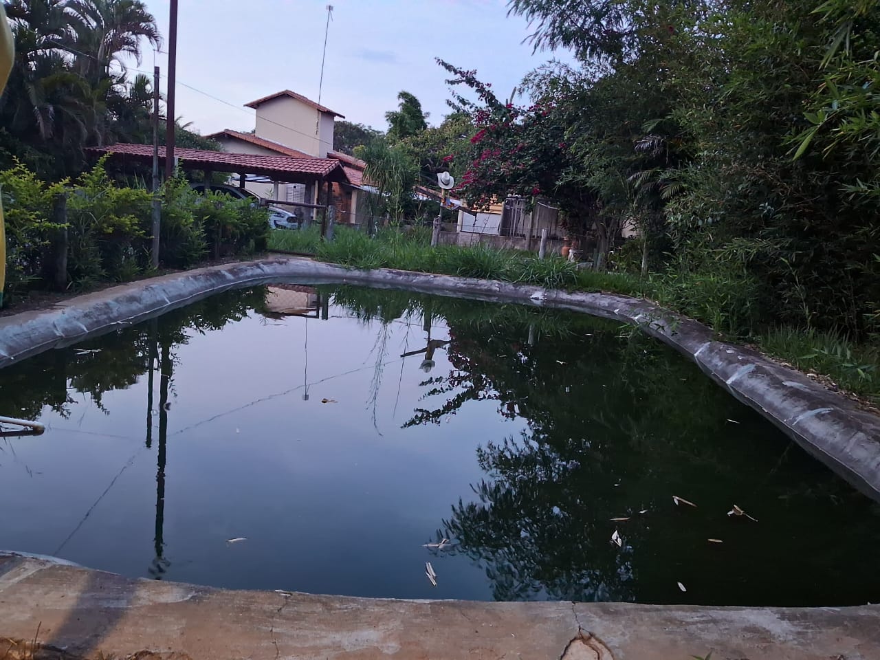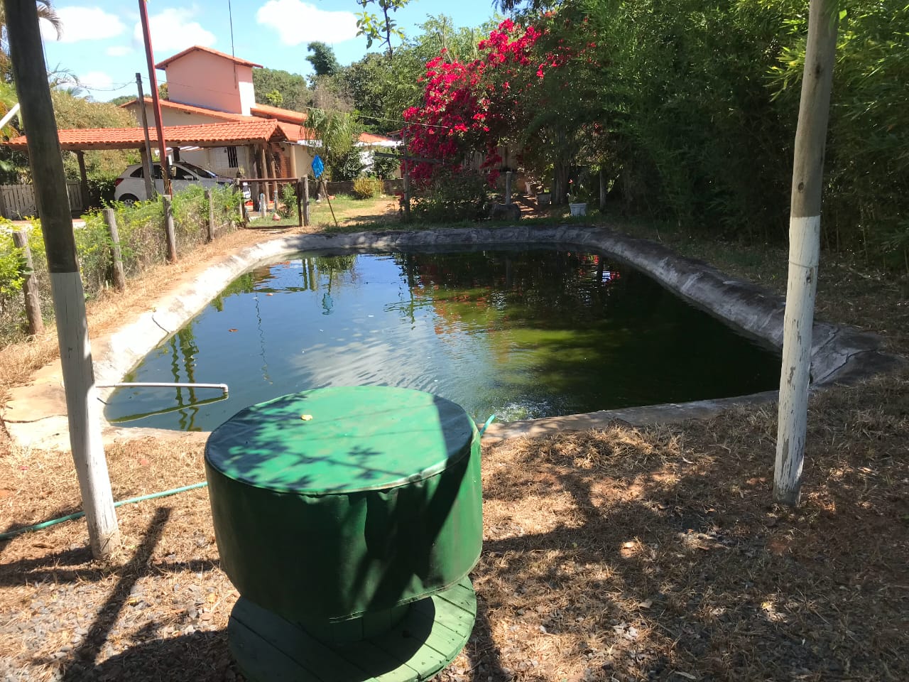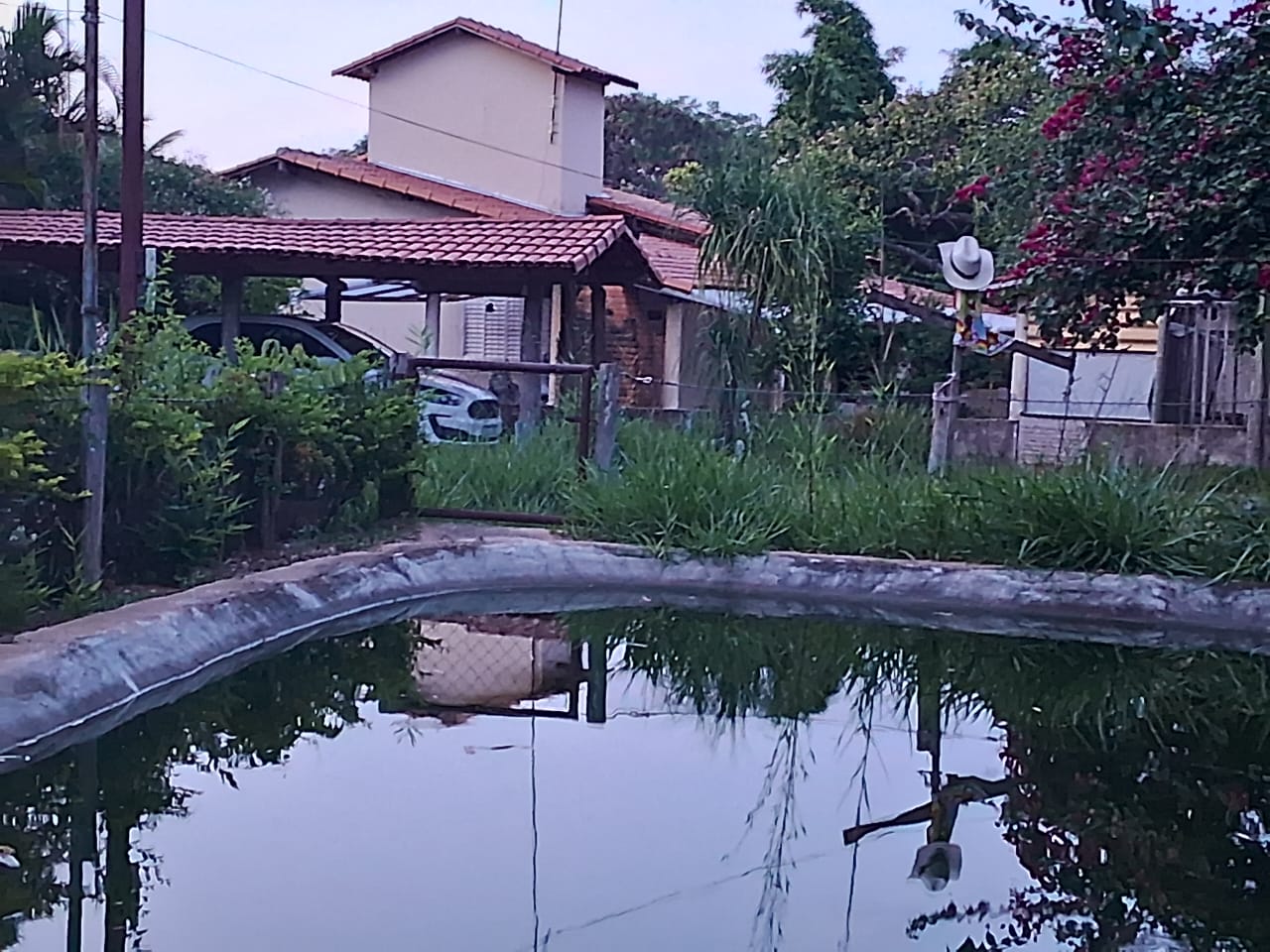 casa boa ,sitio com pomar já produzindo com variedades de frutas, com tanque de peixe, agua e luz, com casa com quartos ,banho social, com lindas plantas ornamentais, tamanho dez mil metros de terreno, só asfalto, área goumert completa com piscina e churrasqueira, aceita um carro na negociação .