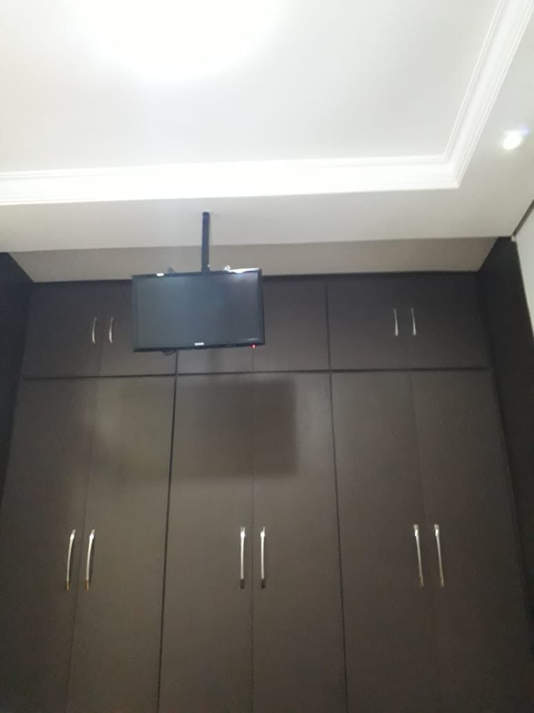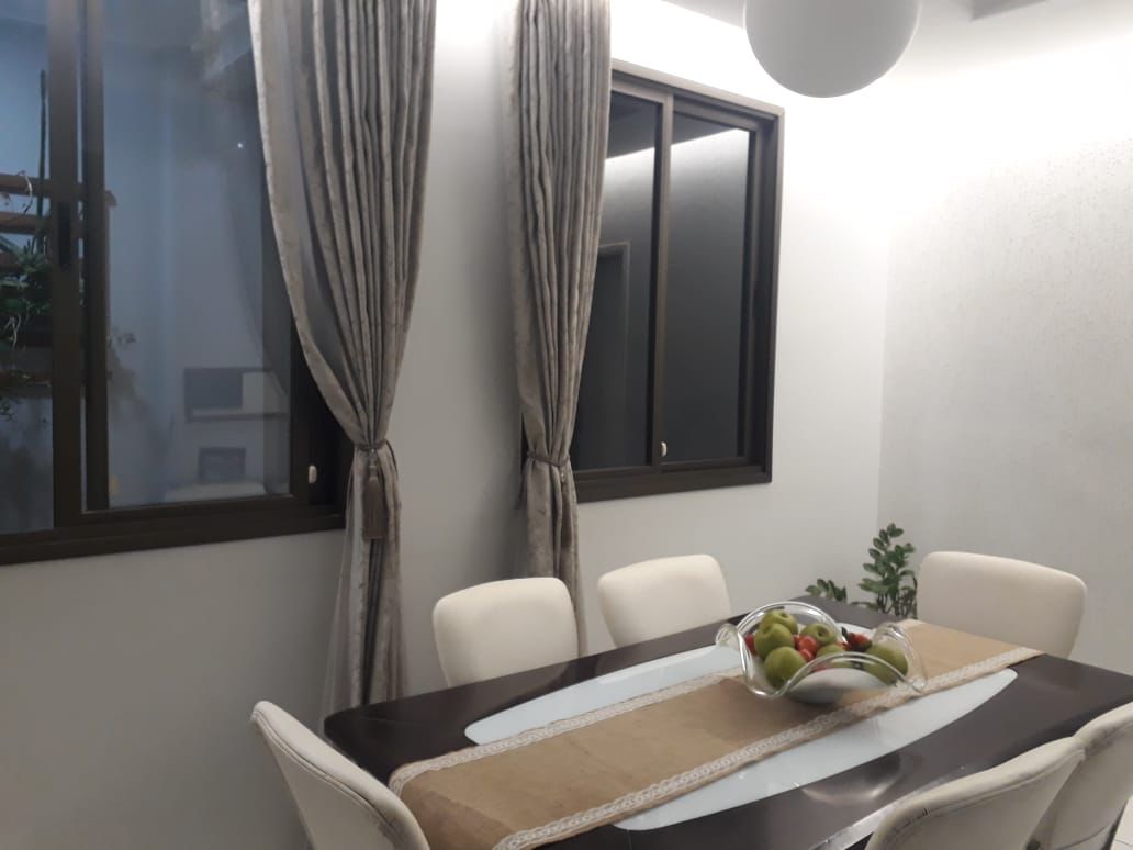 Rebaixamento de teto e iluminação planejados nos ambientes salas, suíte e lavabo.